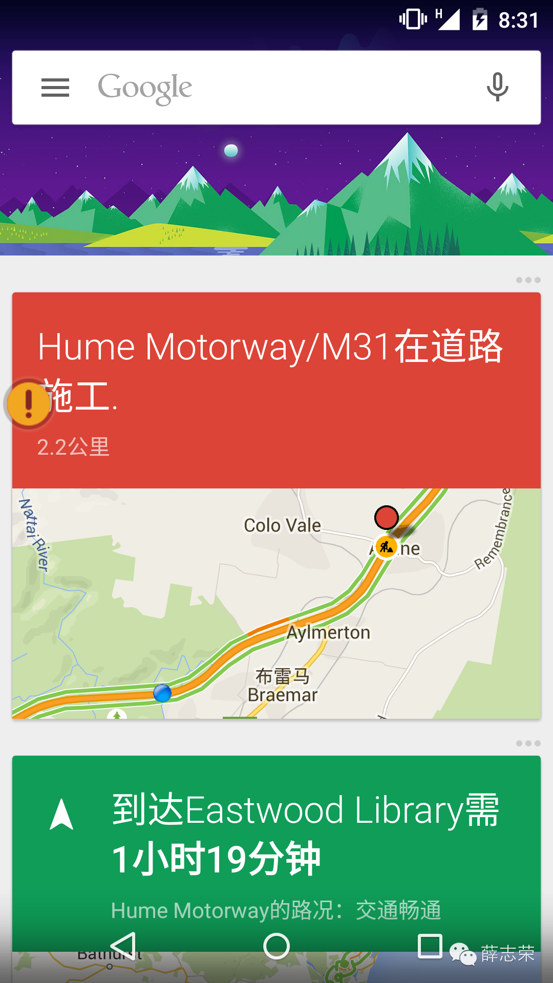 从图中可以看出,在home右滑能切换到android的即时贴,包括了当地天气(很喜欢它的降雨概率,非常有用),附近推荐的地点,包括旅游景点,餐馆,cafe,停车地点(很惊奇它是怎么判断我这时需要停车地点的而推送给我的),拍照景点等,还有,小编回国后再次打开即时贴,发现android自动推送了澳元兑换人民币的卡片我(估计是我第一次打开即时贴在澳洲,认为我家在澳洲而我现在我去天朝玩了,自动推送兑换货币的功能给我,很贴心)即时贴这功能在国内不能用是多么浪费啊!