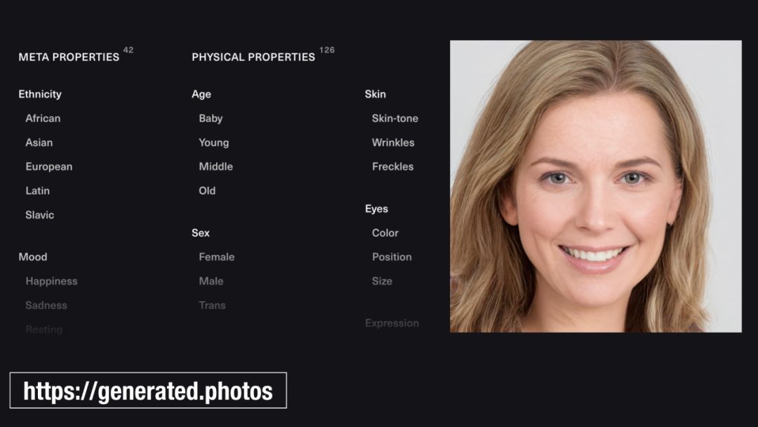 人物照片是我们常用素材之一,肖像权和版权成为我们最烦恼的问题之一。 generated.photos也是一款免费产品,它号称通过AI技术自动生成10万张肖像照片。这个网站拥有不同种族、年龄、皮肤、性别、眼睛、心情等数据,可以通过排列组合的形式创造出10万张肖像照片,这些照片里的人物在现实生活中都是不存在的,所以不存在肖像权问题。 除了通过AI解决素材的问题,我们还能如何了解更多AI相关的实践?