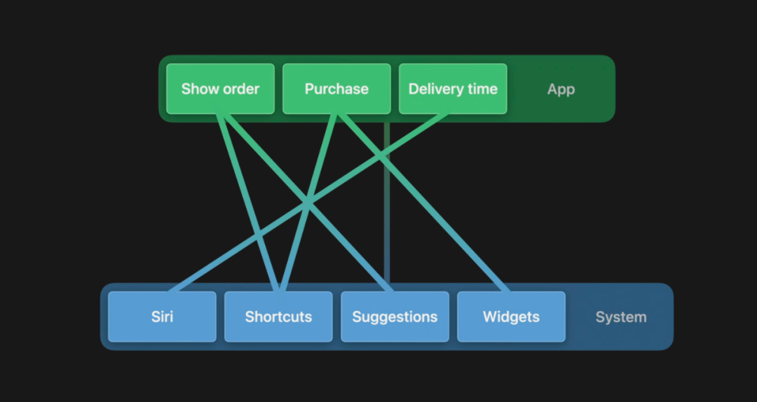 同时苹果提出了一个通用语言: 意图框架(Intents Framework) 。意图框架有三个关键概念,分别是定义,学习和执行的,了解它们有助于你的用户在你应用的关键路径上加快节奏,并随着时间的推移适应用户的偏好。