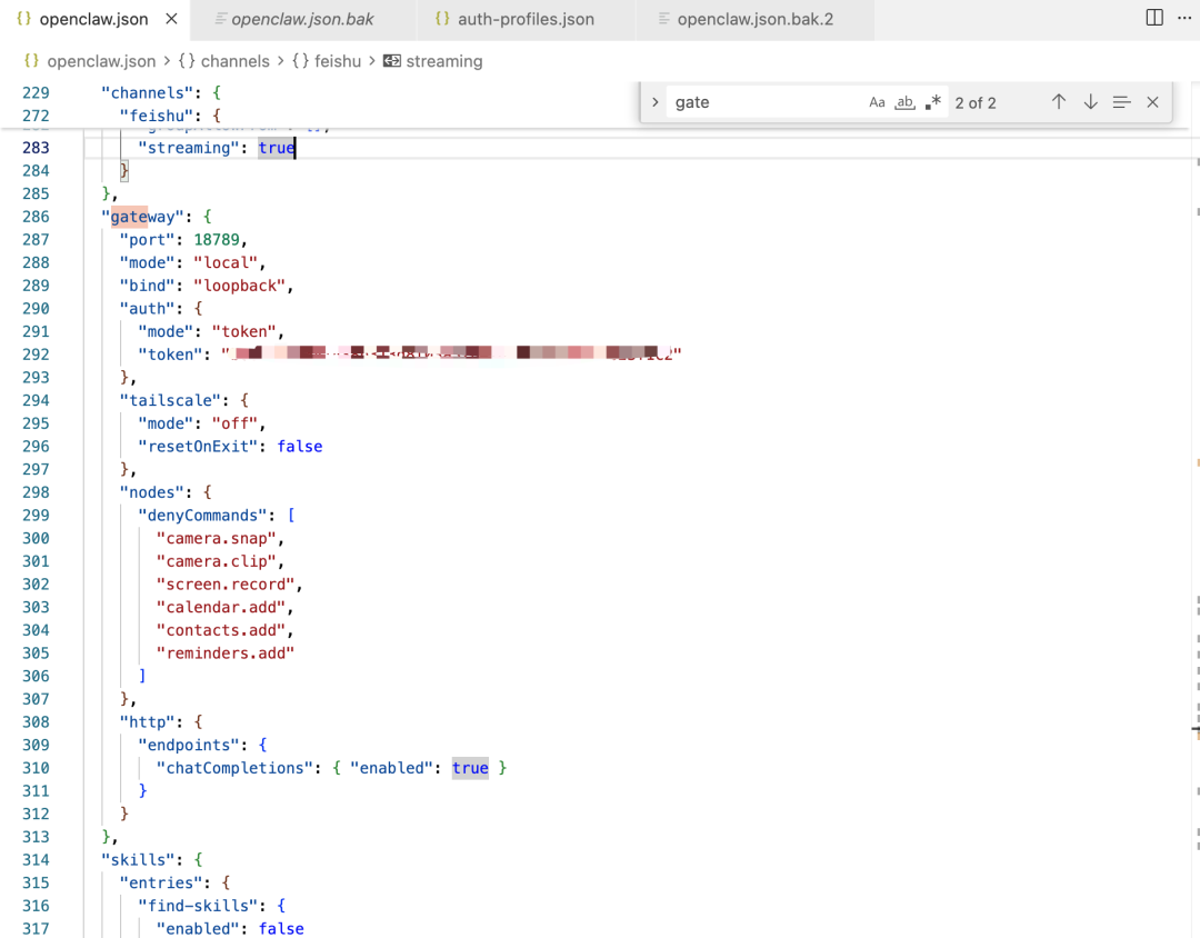 在 OpenClaw 的配置文件 openclaw.json 中加入以下内容,然后重启网关: