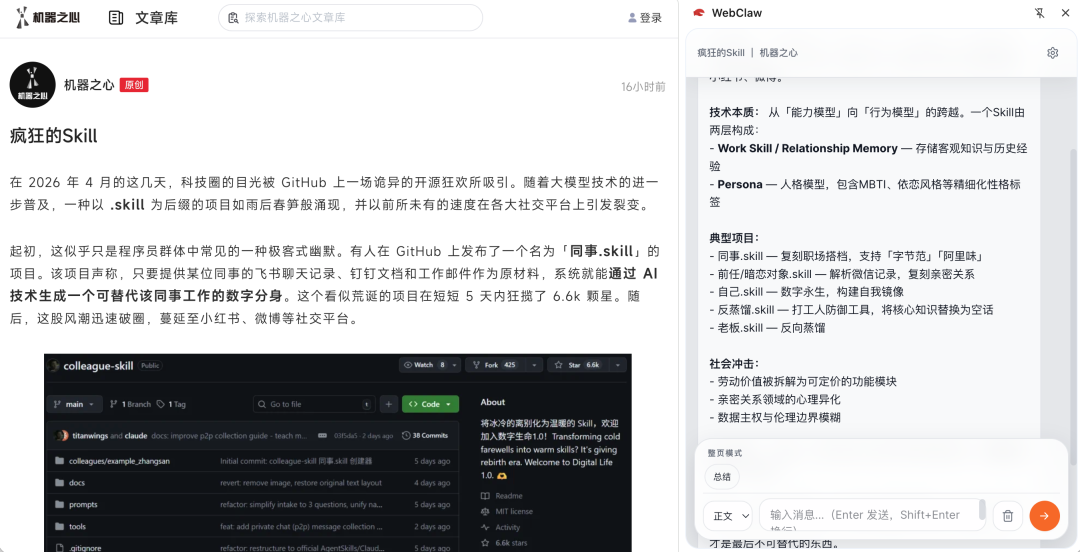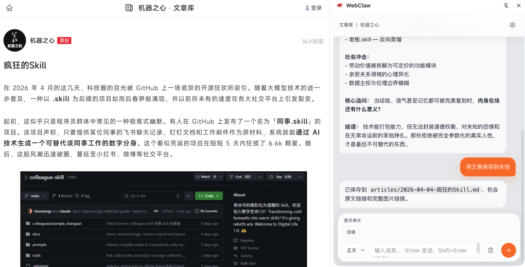 明明有 OpenClaw,读网页时却完全用不上——我开源了一个插件解决这件事