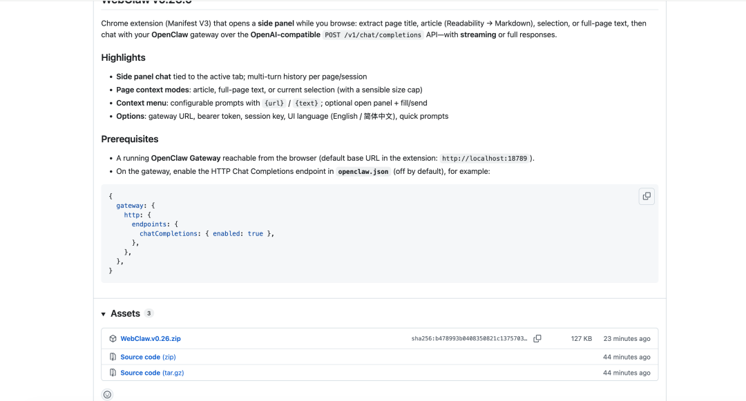 前往 https://github.com/xue160709/WebClaw/releases/ 下载最新版压缩包。