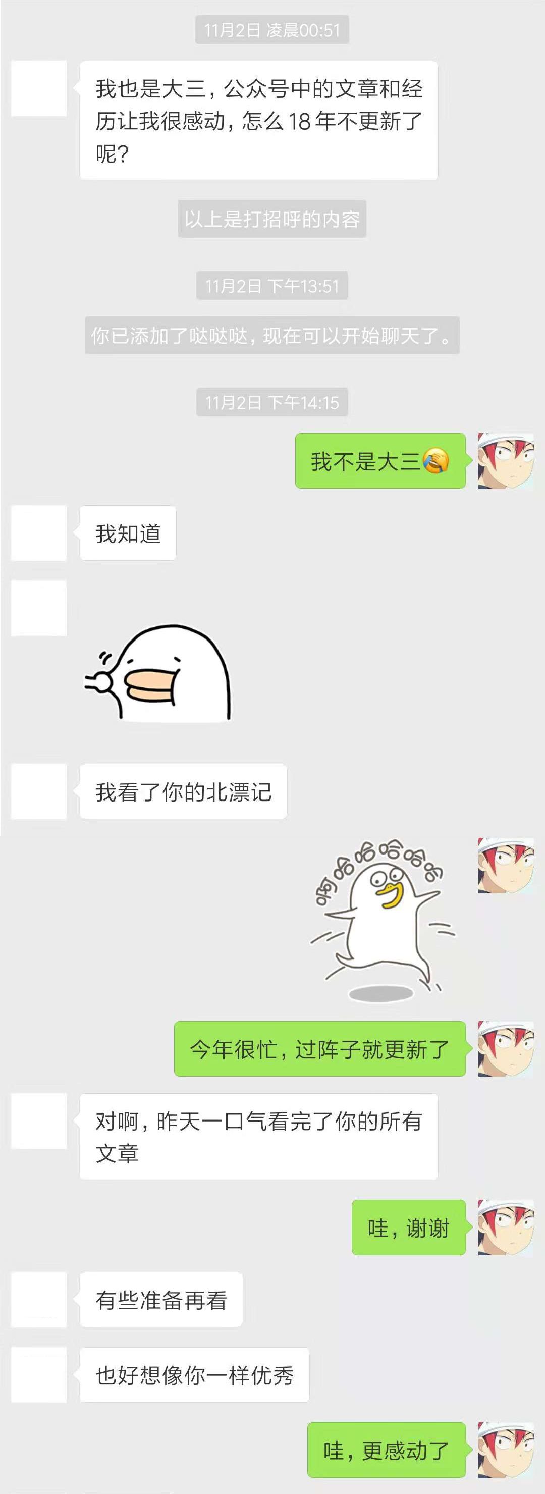 今年有些读者问我是不是太累所以没时间更新公众号了,以下截图来自一名读者的灵魂慰问...看完后不知道是想笑还是想哭。说真的,我很感谢每一位还没放弃本公众号的读者们,只要还有一位读者支持我,这个公众号是不会停止更新的 😃