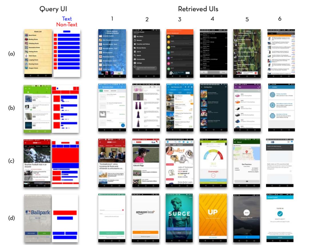 Rico最主要的功能是设计搜索,它能根据关键词或者截图找到类似的结构,还可以通过应用名字找到相关的应用截图,不仅能为设计师提供灵感还能大幅度提升设计师的工作效率。以下是作者在ACM SIGCHI 2017上的发表视频: