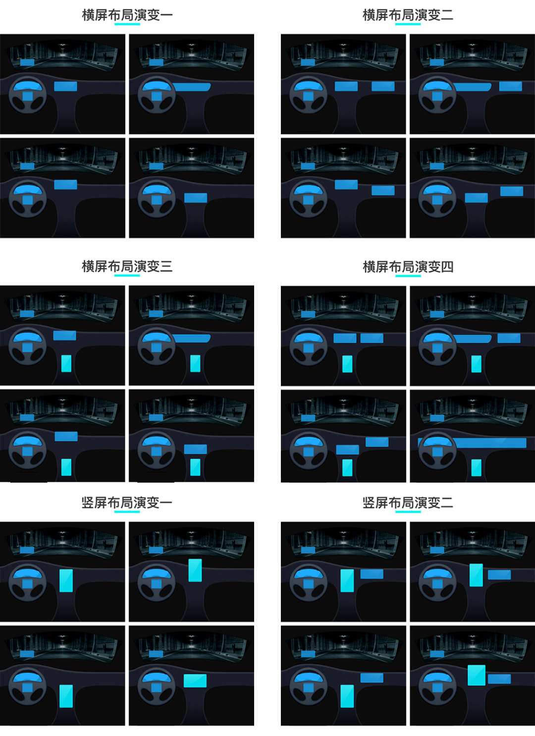 HUD、仪表盘、中控屏、车控屏、副驾屏甚至是方向盘屏都是我们在以往车型中所看到的,常见组合可以参考以下不同屏幕的布局演变方式。在多屏交互上,很多车企都会关注屏幕之间的信息切换,包括仪表盘和中控之间的信息切换,例如几何汽车允许驾驶员通过三指左滑的形式将中控的地图信息切换到仪表盘上;以及中控和副驾屏之间的信息切换,例如小鹏G9允许用户无论在主屏或者副屏观看电影时,都可以通过两指滑动分享屏幕。