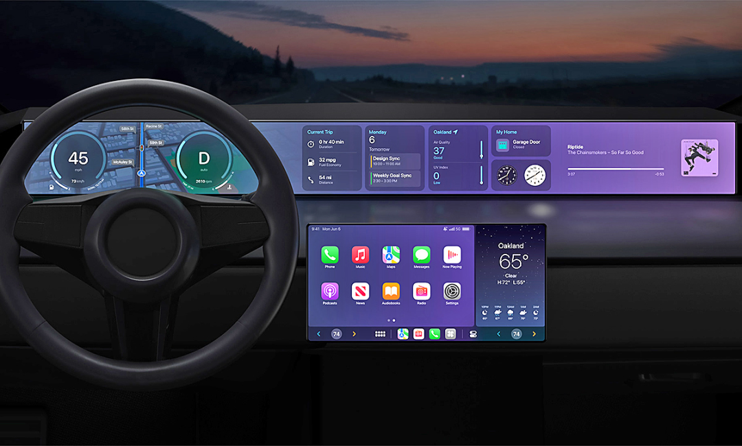 以上都属于座舱内部的屏幕,而手机、智能手表甚至AR眼镜等设备属于用户随身携带的屏幕,车企和手机终端设备厂商都在相互探索不同屏幕之间的交互方式有哪些,例如苹果在WWDC 2022上发布的最新一代Carplay,它允许用户的iPhone应用和信息直接显示在汽车多个屏幕上,打破了手机和车辆数据的交互隔阂。